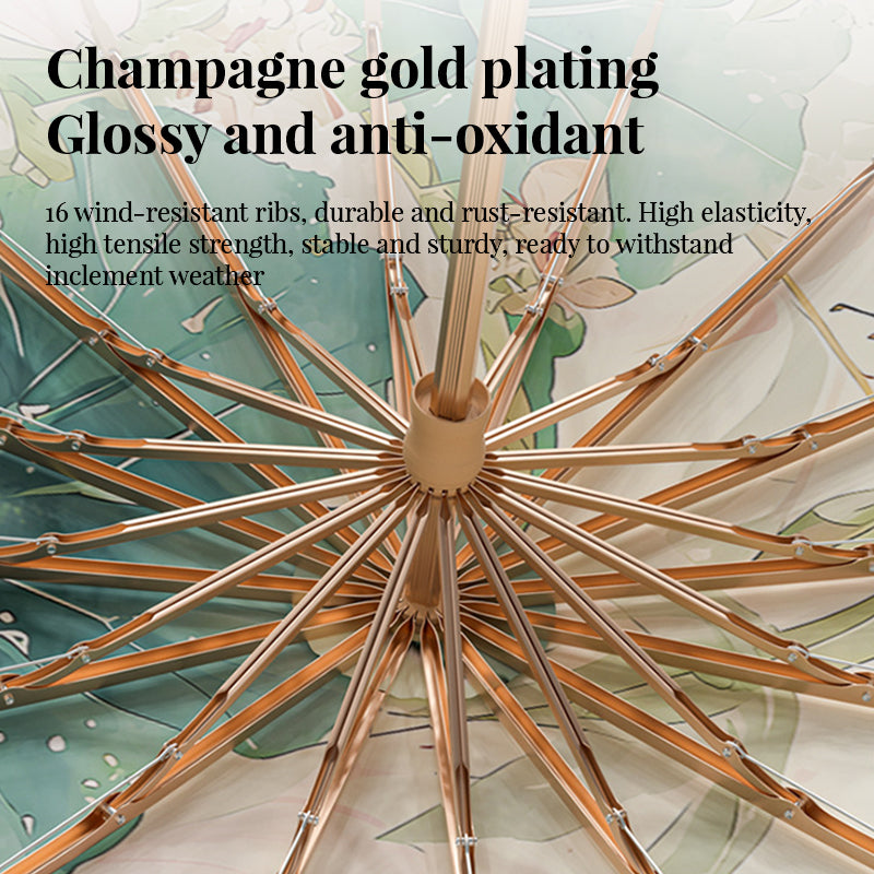 16-rib color rubber & gold aluminum alloy frame: new Chinese retro folding umbrella with sun protection and UV resistance.