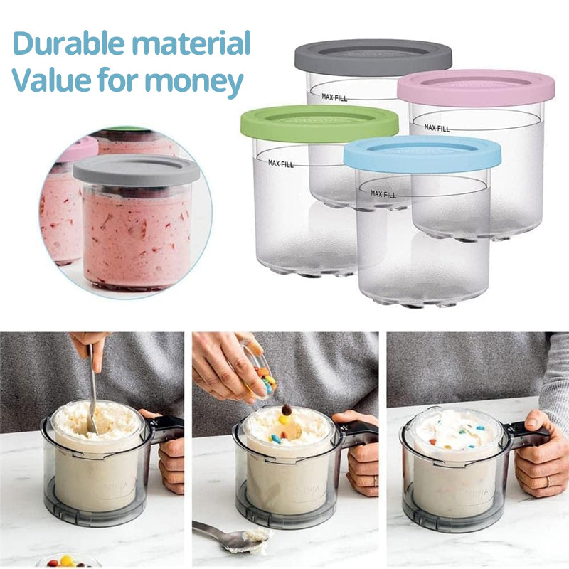 4-Pack of Cups with Leak-Proof Lids, Creamy Ice Cream Containers Set Compatible with Nin-ja NC299AM and C300s Series