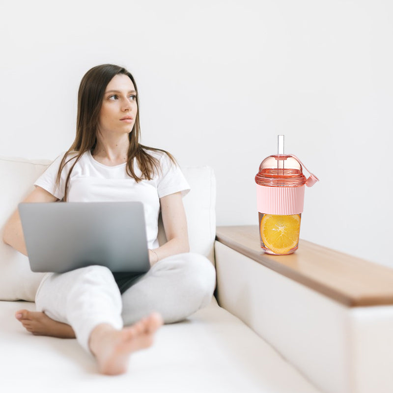 630ML straw cup (with lid/straw) – coffee, milk, tea, water, juice; Ins-style, office-friendly