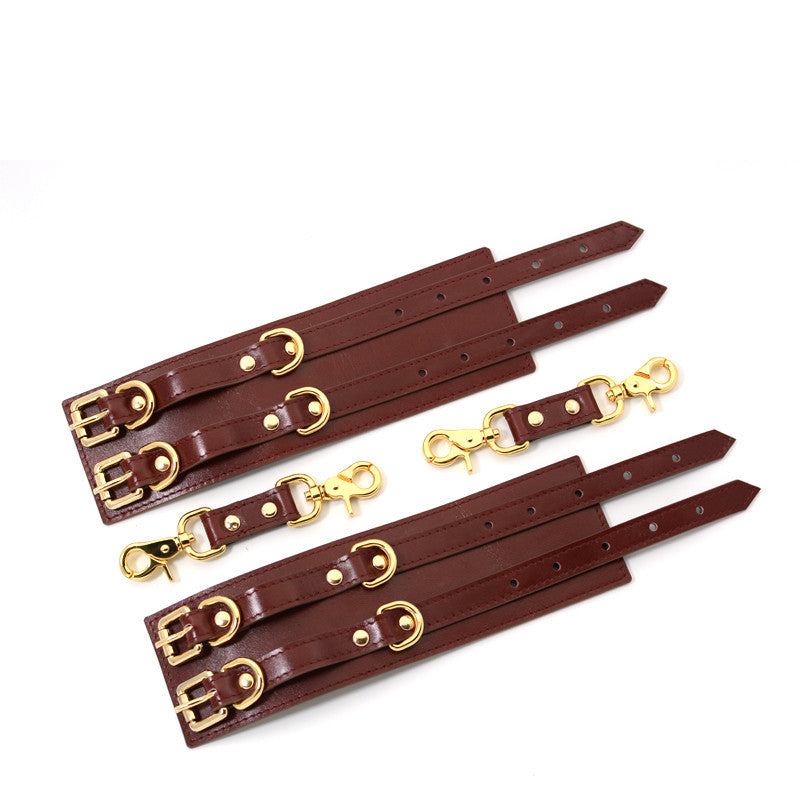 Adult Male And Female Leather Double Buckle Handcuffs For Couples