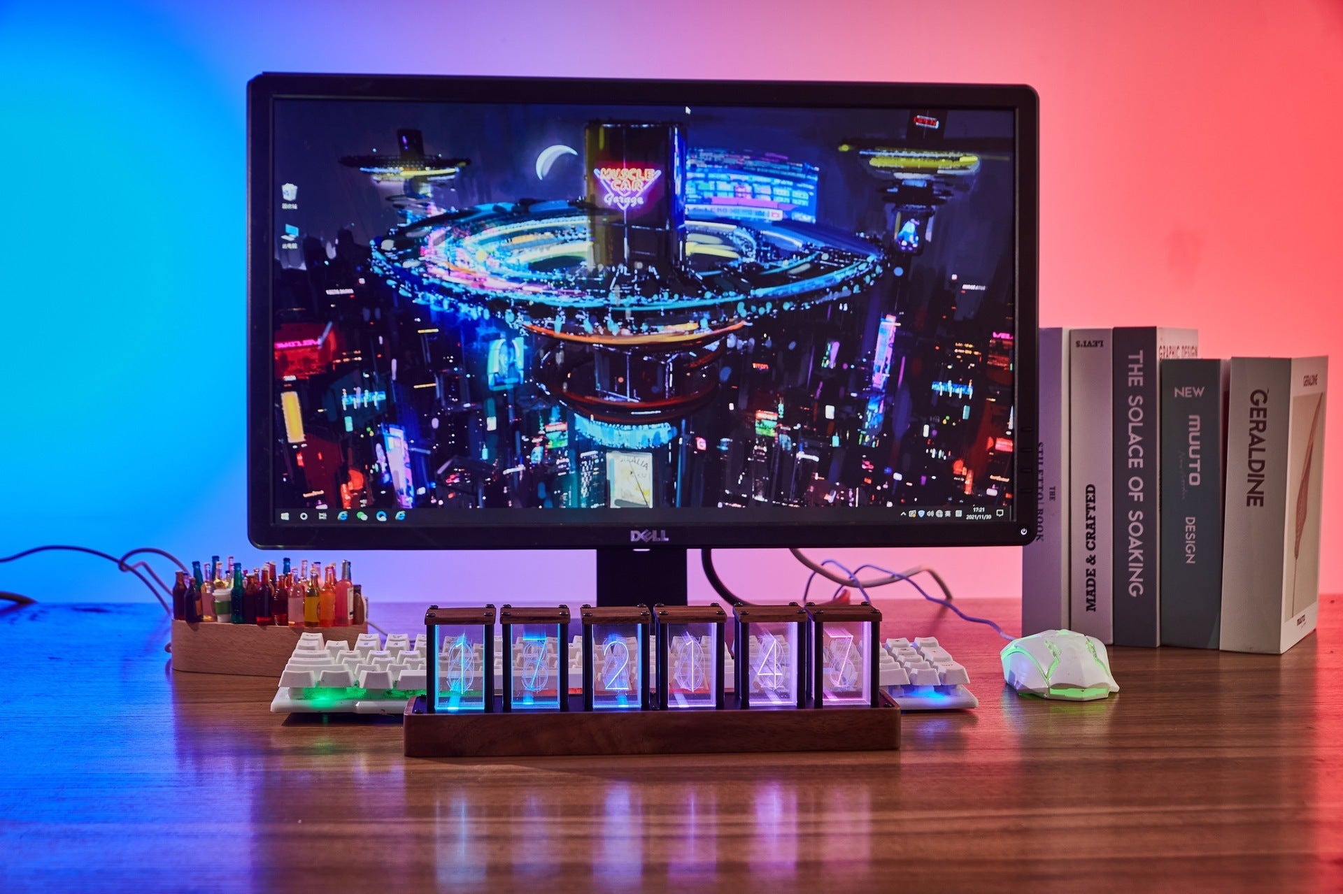Analog Nixie Tube Clock Digital Alarm Clock Timer Walnut