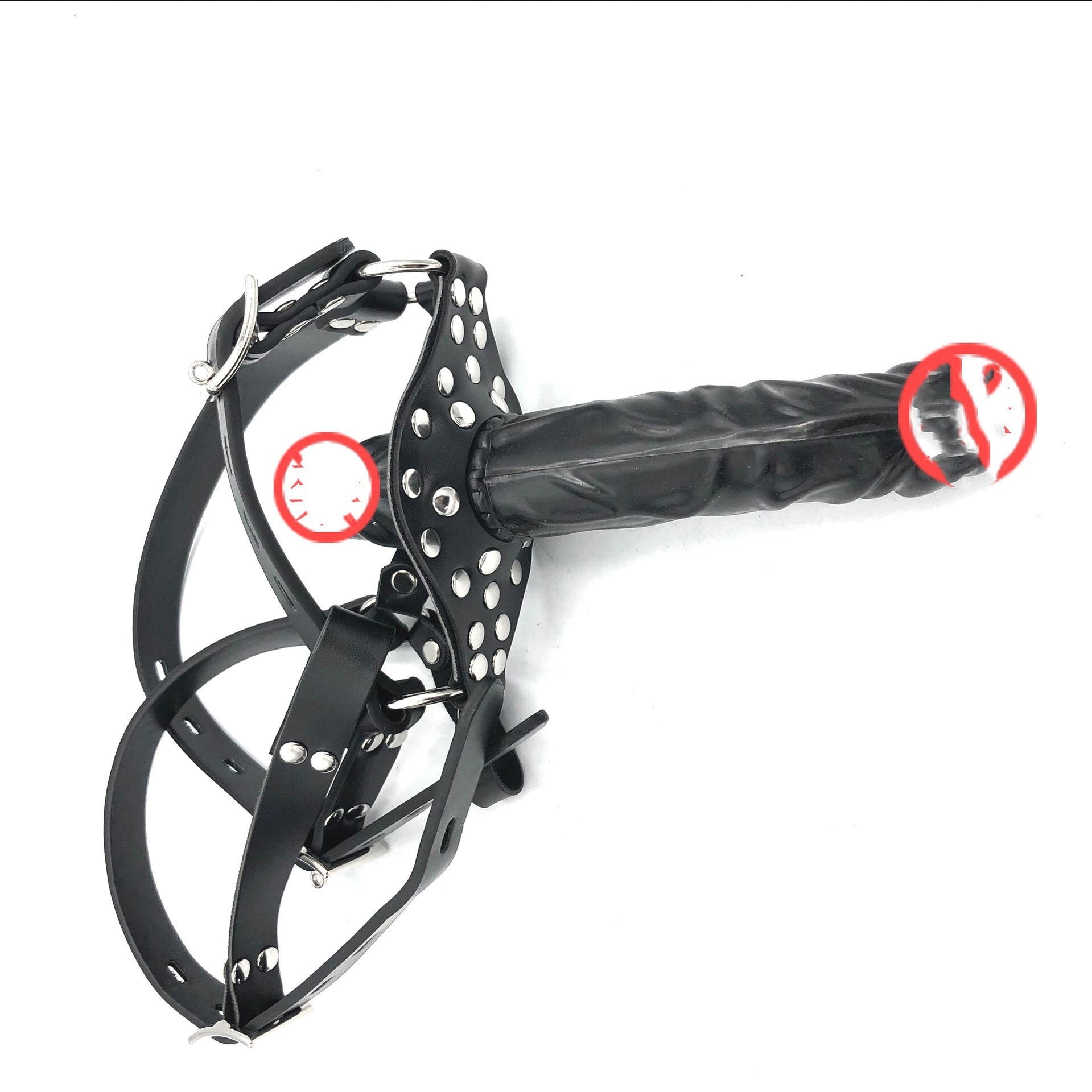 Specification: Horse harness type double head dildo ball gag Black