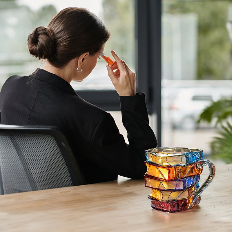Painted Book Mug: 11oz, 3D painted books design, colorful resin, unique coffee cup, ideal for collection/gifts.