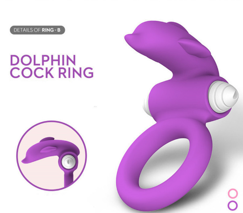 Silicone cock ring with vibrating dolphin for clitoral stimulation