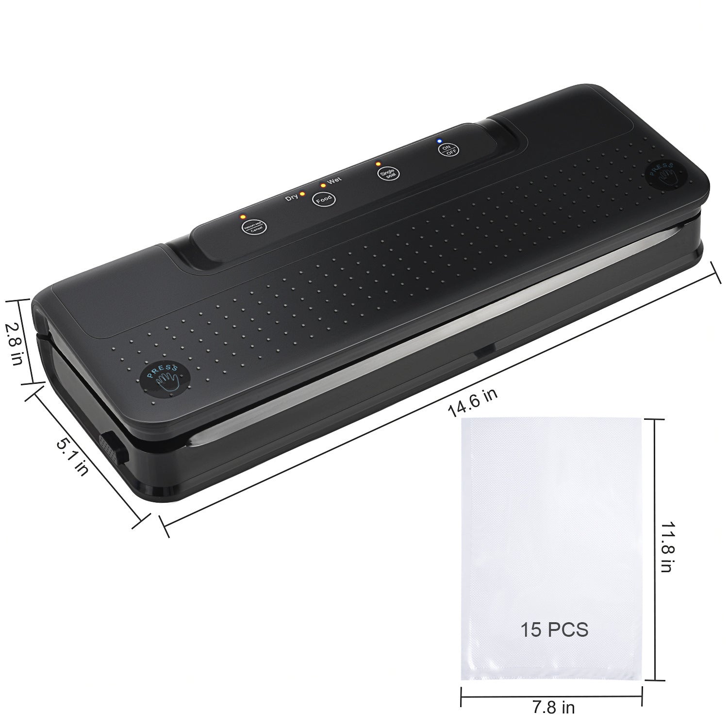 Vacuum + sealing time: 5~10 seconds