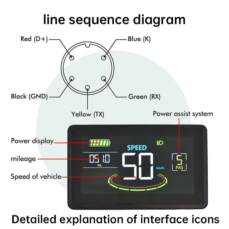 Waterproof color LCD meter H6C for e-bikes, SM/weatherproof connector, smart e-bike screen with USB.