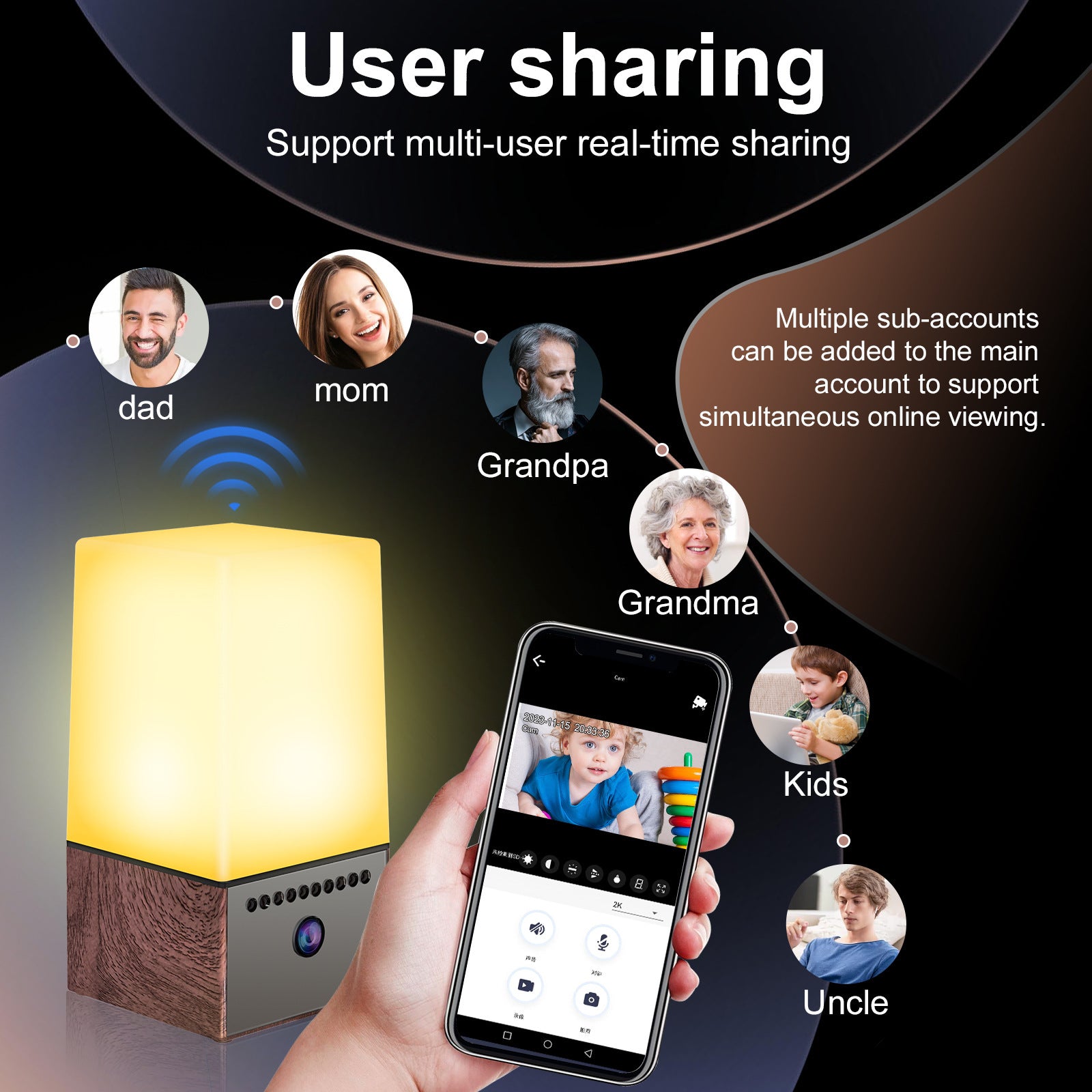 Function: LED colorful lights, two-way voice intercom, photo and video recording, infrared night vision